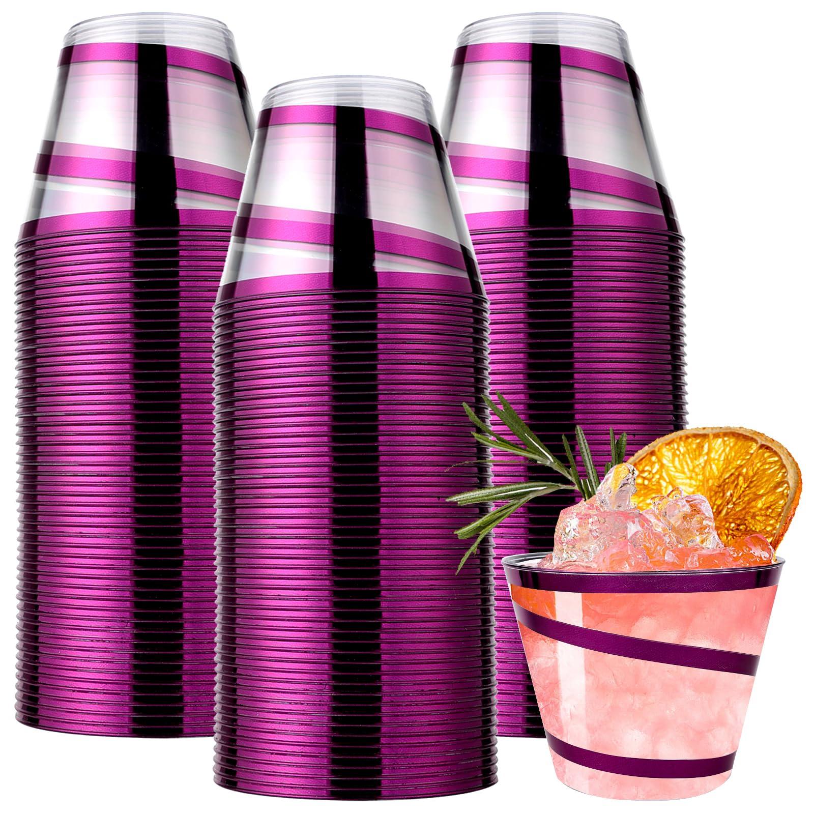 - Sufficient Quantity: You will receive 100pcs purple elegant hard clear plastic tumblers, enough quantity to meet your daily life use and needs, you can also share it to your family and friends. Each disposable cup has a capacity of 9oz, the diameter of the top is about 3.46 inches/8.8 cm, the diameter of the bottom is about 2.1 inches/5.2 cm, and the height is about 2.8 inches/7 cm