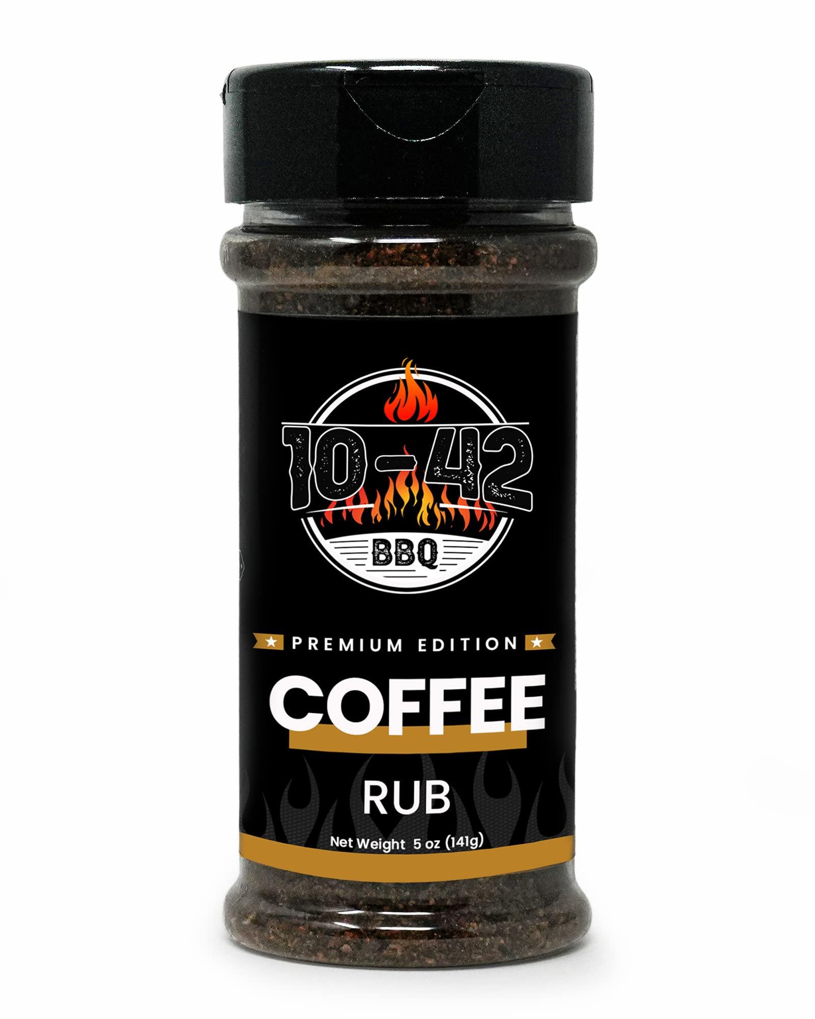 - Premium Coffee Infusion: Designed to deliver a deliciously bold and aromatic crust on your meats. Get that rich and savory flavor using our 10-42 BBQ Coffee Meat Rub whether you're grilling up a sirloin, tomahawk, ribeye or pork chop