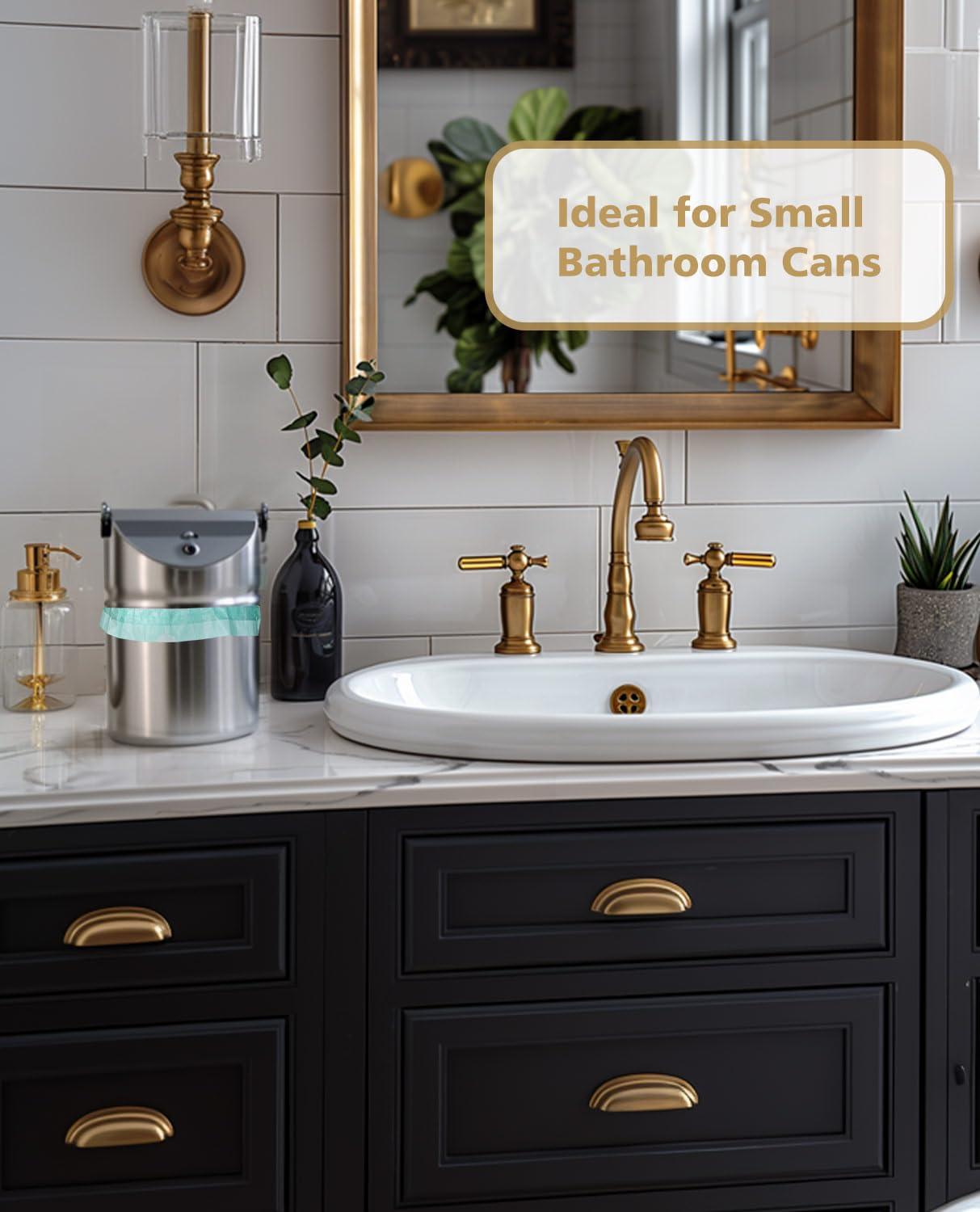 - Small Trash Can Liners: Small Garbage Bags Bathroom (15.7x14.6 inches) fits round garbage bins with D 10.7, H 13.7, rectangular wastebaskets with L8, H13.7. Practical small trash liners for 4.5 liter to 5 liter in bathroom, bedroom, car, kitchen and office