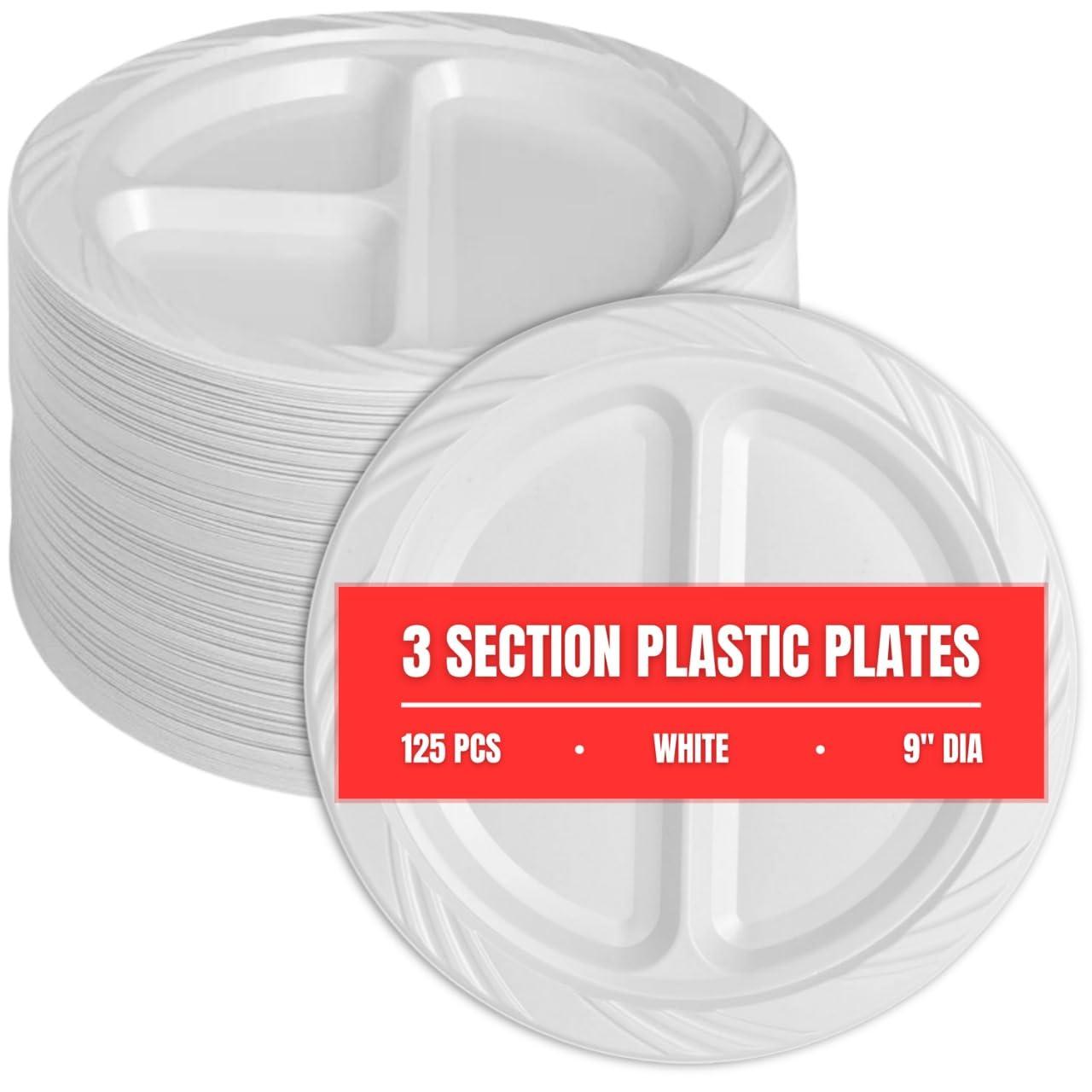 1InTheHome Sectional Plates, 3 Compartment Plates, Sectional Dinner Plates Disposable, Plastic Plates 3 Compartment, 125 pcs