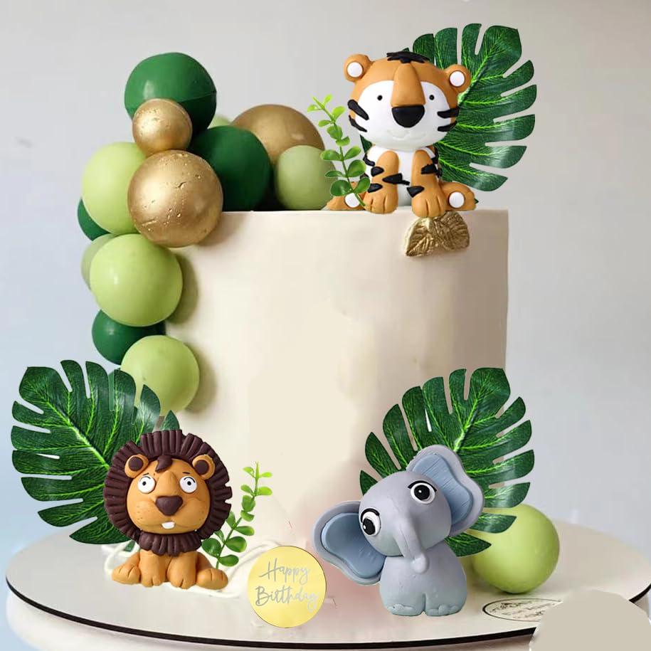 - Elephant Cake Topper Design: Cute jungle animals and leaves cake toppers will make your cake look more delicious and popular with children