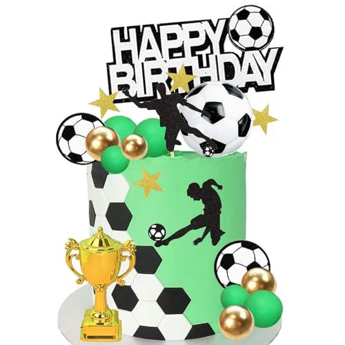 - PACKAGE - Each package includes 1 happy birthday cake topper, 5 soccer cake toppers, 10 gold pentagram cake toppers, 6 soccer player silhouette cake toppers, 12 balls cake toppers, 1 trophy, 1 mini soccer.