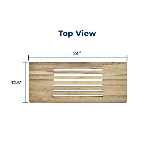 Handcrafted from the finest Burmese Teak, this wall-mounted folding shower bench seat with slot openings is absolutely stunning and embodies quality and craftsmanship. Natural Burmese Teak Wood. The teak wood is uncoated completely natural appearance. Wall Mounted Includes (8) 12 slot openings to let water run off the surface more easily which adds a designer appearance to the seat. #304 stainless steel wall brackets lock securely into place when the seat is lifted. Wall brackets are 16 centerline to centerline. Seat remains in a raised position until you fold it down. Rounded edges on the seat provide additional comfort. Fully sanded. Weight Capacity: 350 lbs (when properly installed into wood backing) Product is NOT ADA Compliant due to requiring two hands to maneuver the hinges. Suggested mounting height ranges from 17 to 19 above the floor. Important Note: Natural teak wood has many shades of colors. Each slat will always vary in color depending on the natural grain of the specific Burmese teak tree used. Due to the shower bench needing two hands to fold it is not ADA compliant, though it meet all other ADA standards.
