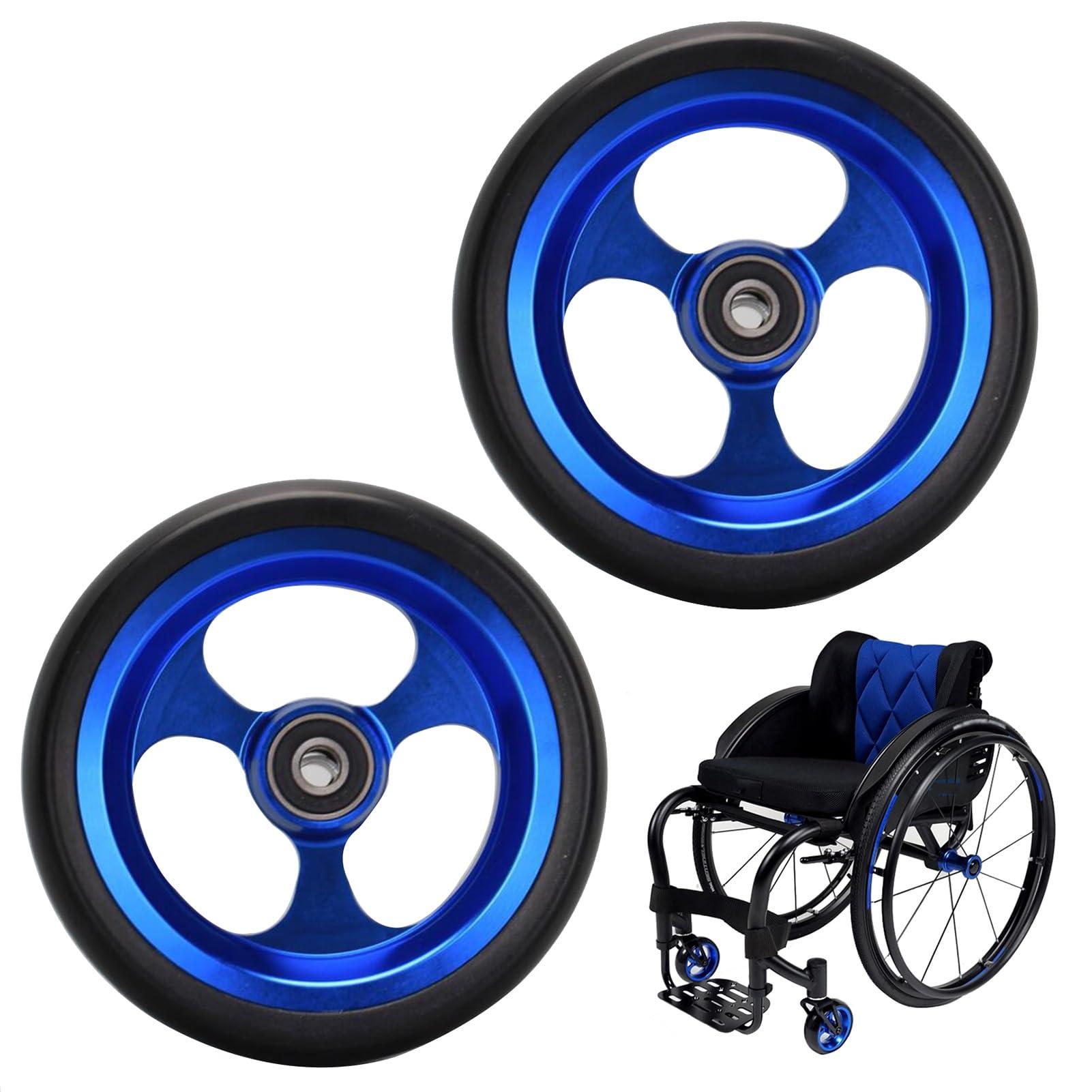 - Set of 2 Wheelchair front wheels: PU solid tires with puncture-proof, wear-resistant, anti-slip, shock-absorbing and other features.