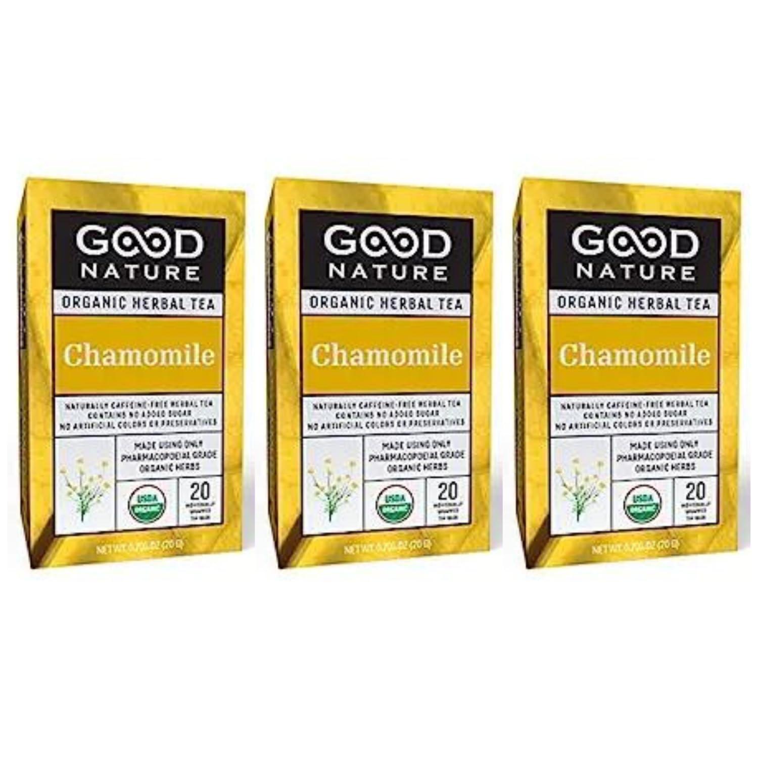 - 3 boxes of Good Nature Organic Herbal Tea (Chamomile). Each box contains 20 individually wrapped tea bags.