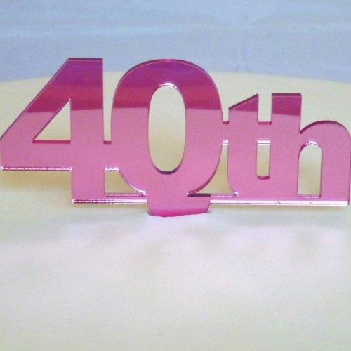 "40th" Cake Topper Pink Mirror - 6cm number height/4cm spike