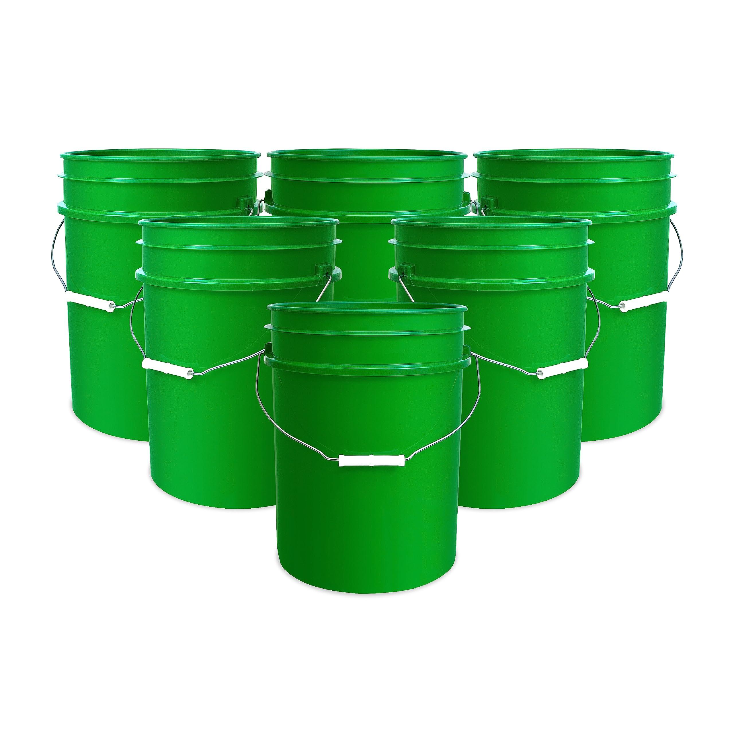 5 Gallon Bucket Only, Made in USA, Food Grade, Durable 90 Mil All Purpose Pail, Contains No BPA Plastic, Premium HPDE, Lids Not included (Green, 6)