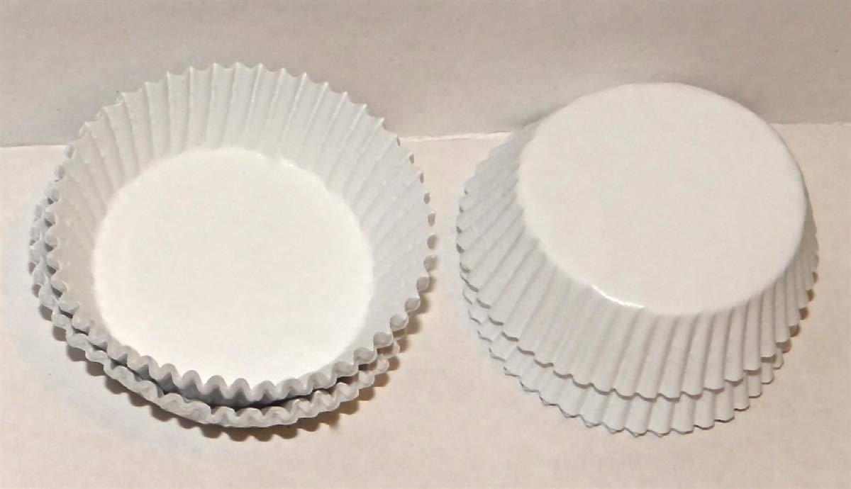 White candy cups used primarilly for dipped cookies and large chocolates. 1 3/4" wide at the bottom and 1/2" high.,