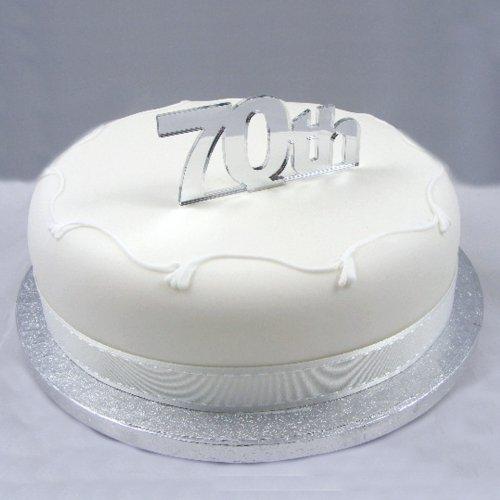 - "70th" Cake Topper 10cm (4inch) Silver Acrylic Mirror (Overall size 15cm x 16cm inc spike)