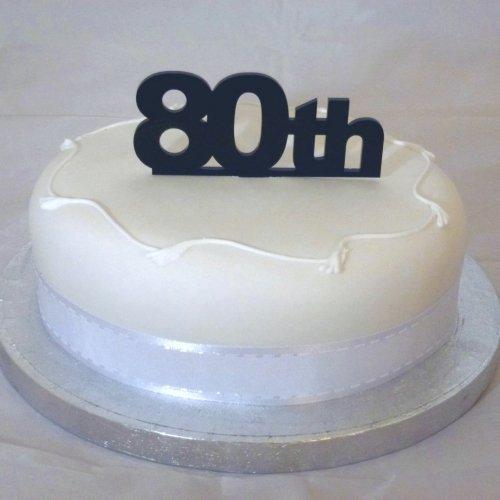 - "80th" Cake Topper 10cm (4inch) Black Solid Acrylic (Overall size 15cm x 16cm inc spike)