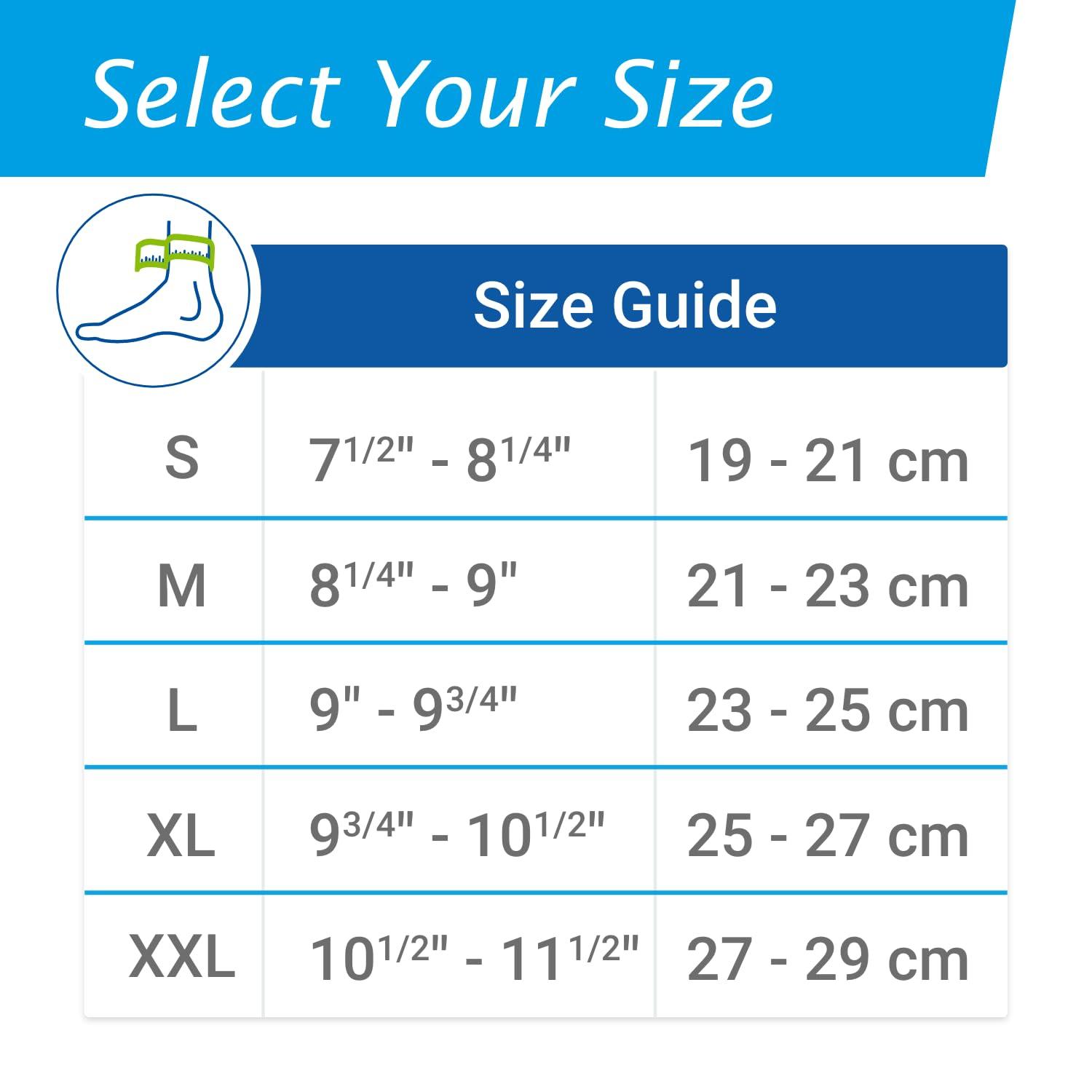 - FIND THE BEST FIT: With the help of a measuring tape, measure the circumference of your leg just above the ankle. Select the right size based on the size chart