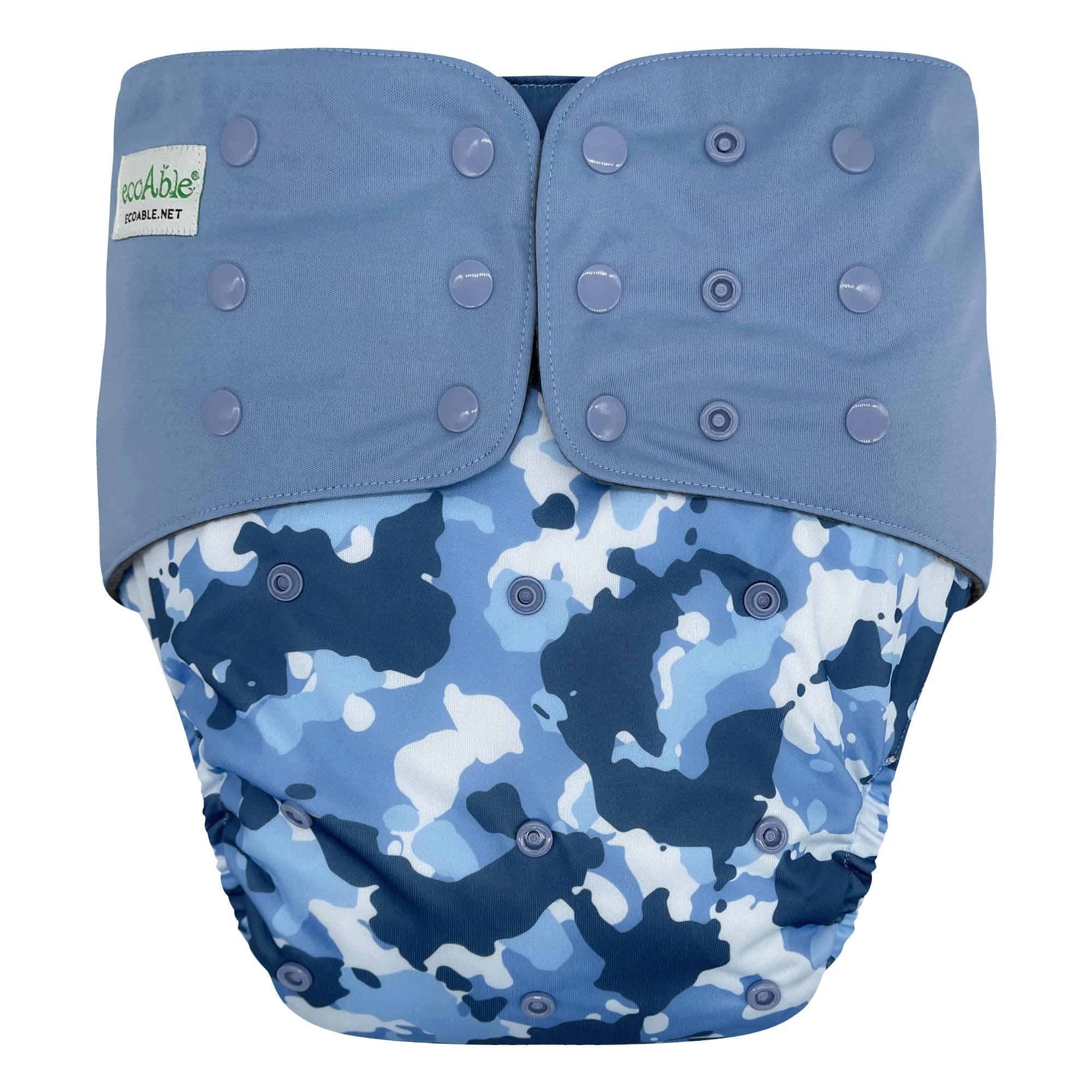 Ecoable Adult Pocket Cloth Diaper 2.0: Reusable Incontinence Protection Briefs for Special Needs Teens, Men and Women (Medium, Blue Camo)