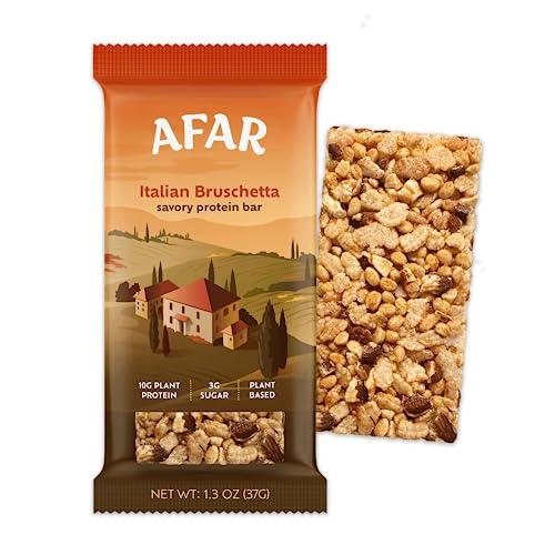 Afar Afar Savory Protein Bars Low Sugar, High Protein Healthy Snack for Adults Meal Replacement Bar Rice Crispy Texture Vegan, Gluten Free 8 Bars (Italian Bruschetta)