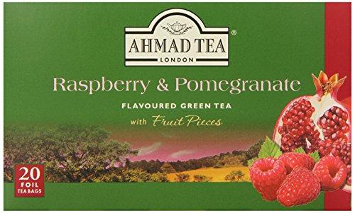 - DELICIOUS & SATISFYING FLAVOR Ahmad Tea earned 22 Great Taste Awards, Raspberry & Pomegranate being a favorite green tea. A delicious fruity blend made with real pieces of raspberry & pomegranate.