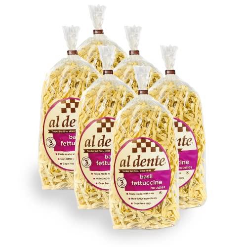 - All-natural, hand-crafted, homemade-texture egg fettuccine flavored by basil