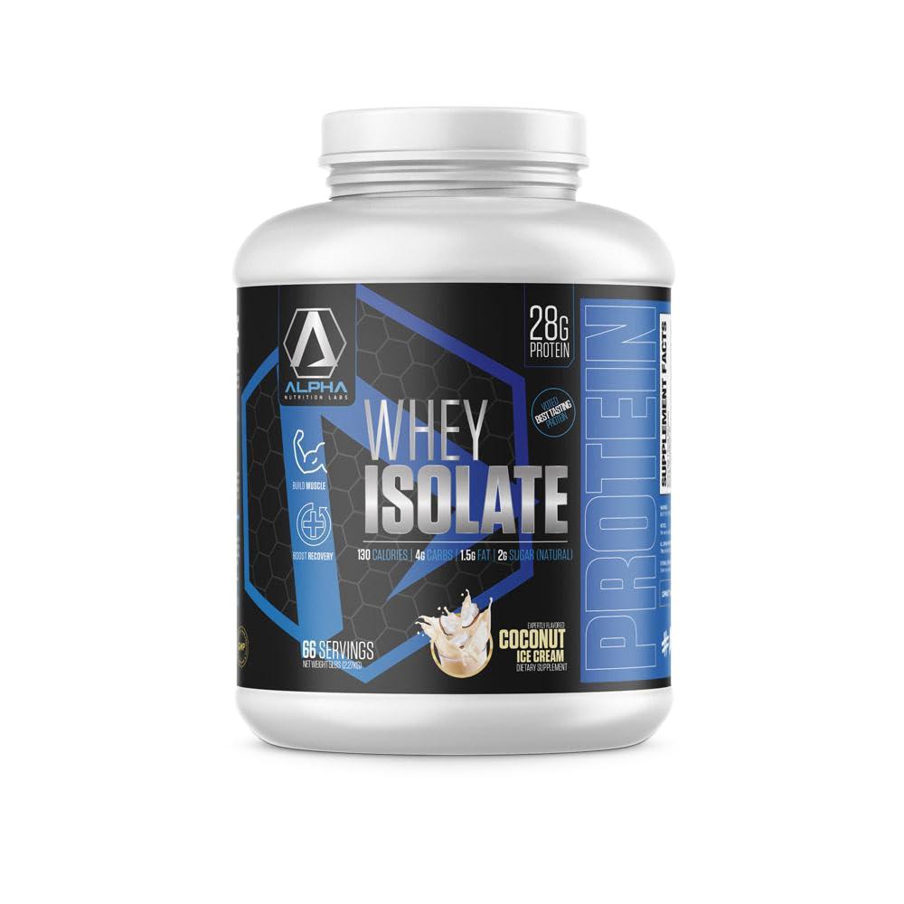 ALPHA ISOLATE PROTEIN AWARDED #1 BEST TASTING 2014 100% COLD-FILTERED, ION-EXCHANGE WHEY ISOLATE FULL-SPECTRUM AMINO ACID'S WITH BCAA'S ALL-NATURAL, NO SUGARS ADDED, LOW CARB Cold-Filtered Whey Isolate Protein is one of the highest biological value wheys known to man. Its massive concentration of branched-chain amino acids are quickly absorbed into the body, used to fuel muscle growth and protein- synthesis. Alpha Nutrition Labs Protein boosts energy, helps curb your appetite from sweets and other carbs, and acts as an antioxidant, preventing the peroxidation of fats. Also, increases endurance and muscle recovery from physical activity (-especially effective within 30 min after exercise ) while improving resynthesis of the bodys high energy store, glycogen by 20%. 28 G PROTEIN 102 CALORIES 4 G CARBS 0 G FAT 1 G SUGAR (NATURAL) TASTES GREAT, MIXES EASILY AVAILABLE IN: VANILLA BANANA MANGO COCONUT ICE CREAM CHOCOLATE Coming Soon: Chocolate Peanut Butter and Berry