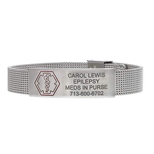American Medical ID – Sleek Mesh Medical Alert ID Bracelet – Surgical Stainless Steel, Adjustable ID Band Sizing & Clasp, 4 Lines Personalized Engraving Included