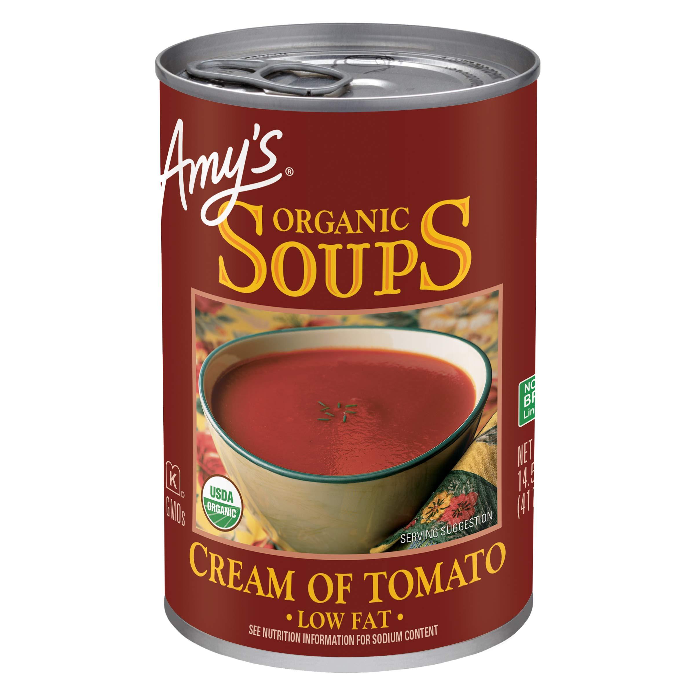 Amys Organic Cream of Tomato Soup bursts with fresh-from-the-garden flavor. Our chefs start with organic, sun-ripened tomatoes that are slowly simmered then blended with a touch of organic cream. This smooth, creamy soup is perfect on its own or paired with a grilled cheese sandwich. Its gluten free, soy free, corn free and tree nut free, suitable for vegetarian and kosher diets and naturally low in fat. Its convenient and easy to preparesimply heat and serve! Since 1987, we at Amys Kitchen have produced delicious, organic, convenient foods for people who are sometimes too busy to cook. Amys is a family-run business, and we supervise every aspect of our business and take pride in customer satisfaction. All the fruits, vegetables and grains we use are grown without the use of insecticides, GMOs and other harmful chemicals. We prepare these ingredients with the same careful attention in our kitchen as you would in your own home for high-quality, home-style vegetarian and vegan meals. No meat, fish, shellfish, poultry, eggs or peanuts are ever used in any Amy's products. Even though you're heating up our meals in your home, we want each bite to taste like you're a guest in ours.