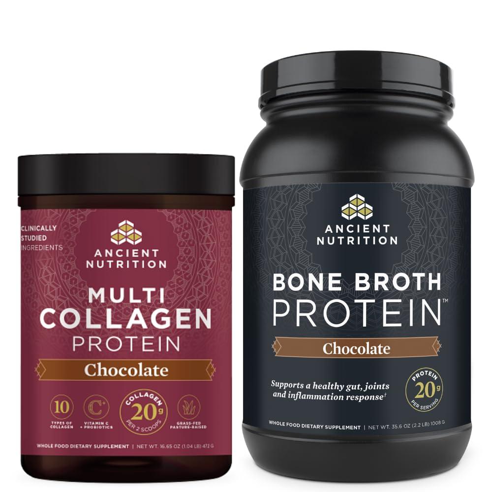 - You will receive (1) bottle of Multi Collagen Protein Powder, Chocolate and (1) Bone Broth Protein Powder, Chocolate by Ancient Nutrition