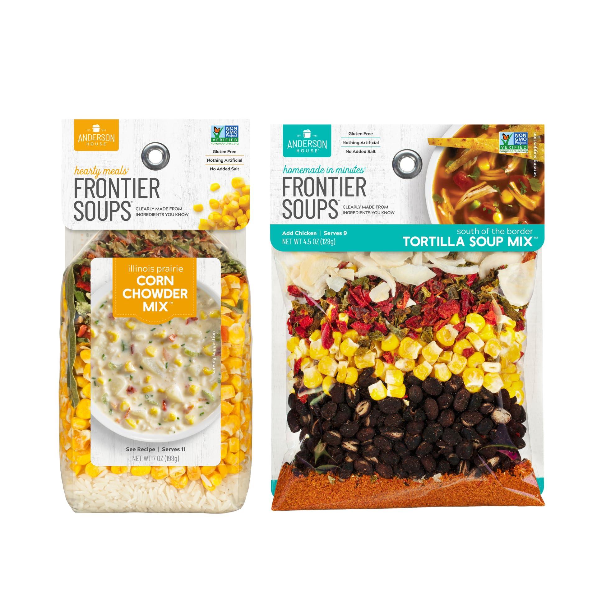 Anderson House Frontier Soups Combo Pack: (1) Illinois Prairie Corn Chowder, 7 oz and (1) South of the border Tortilla, 4.5 oz