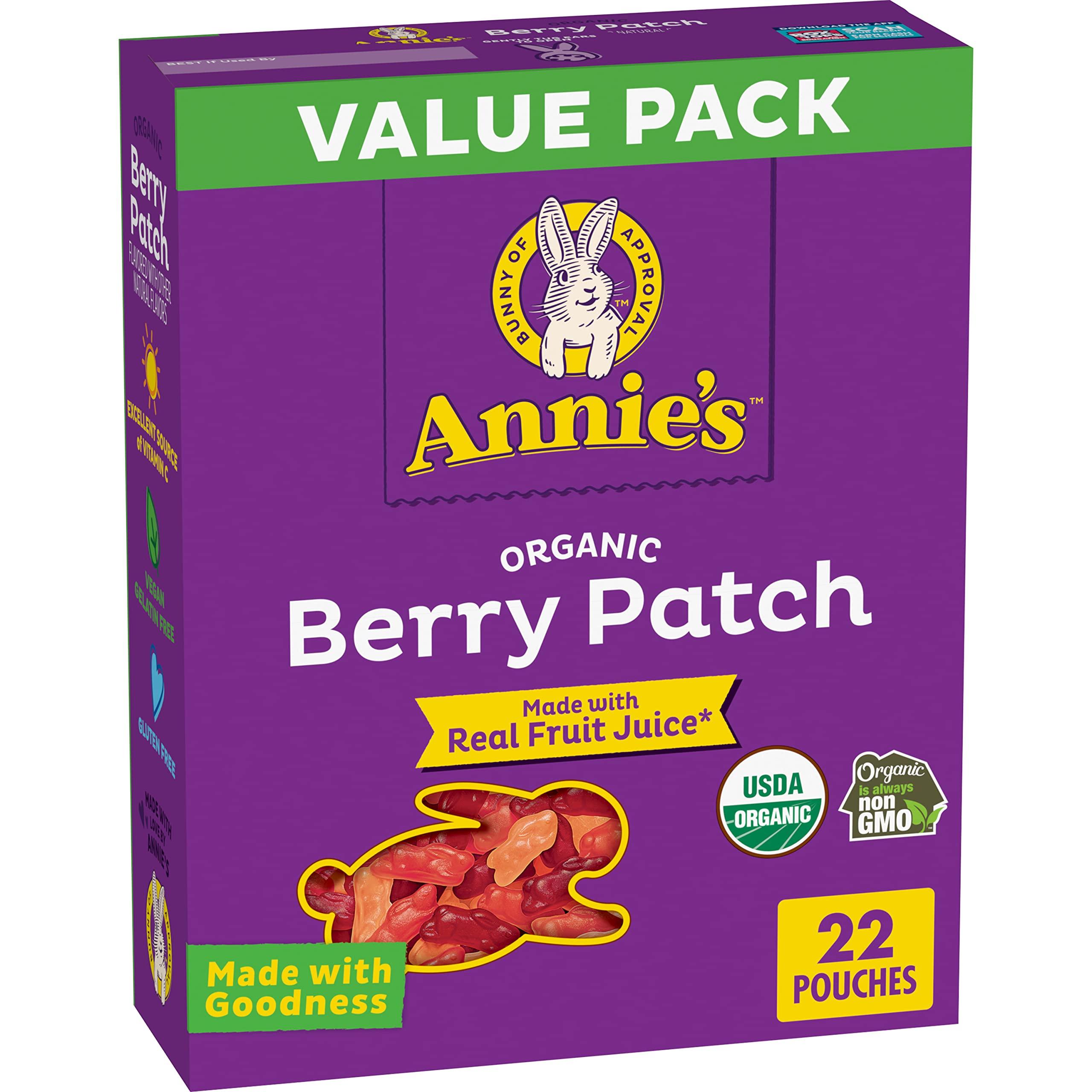 - CONTAINS: One 15.4 oz Value Pack of Annie's Organic Berry Patch Bunny Fruit Flavored Snacks; 22 pouches