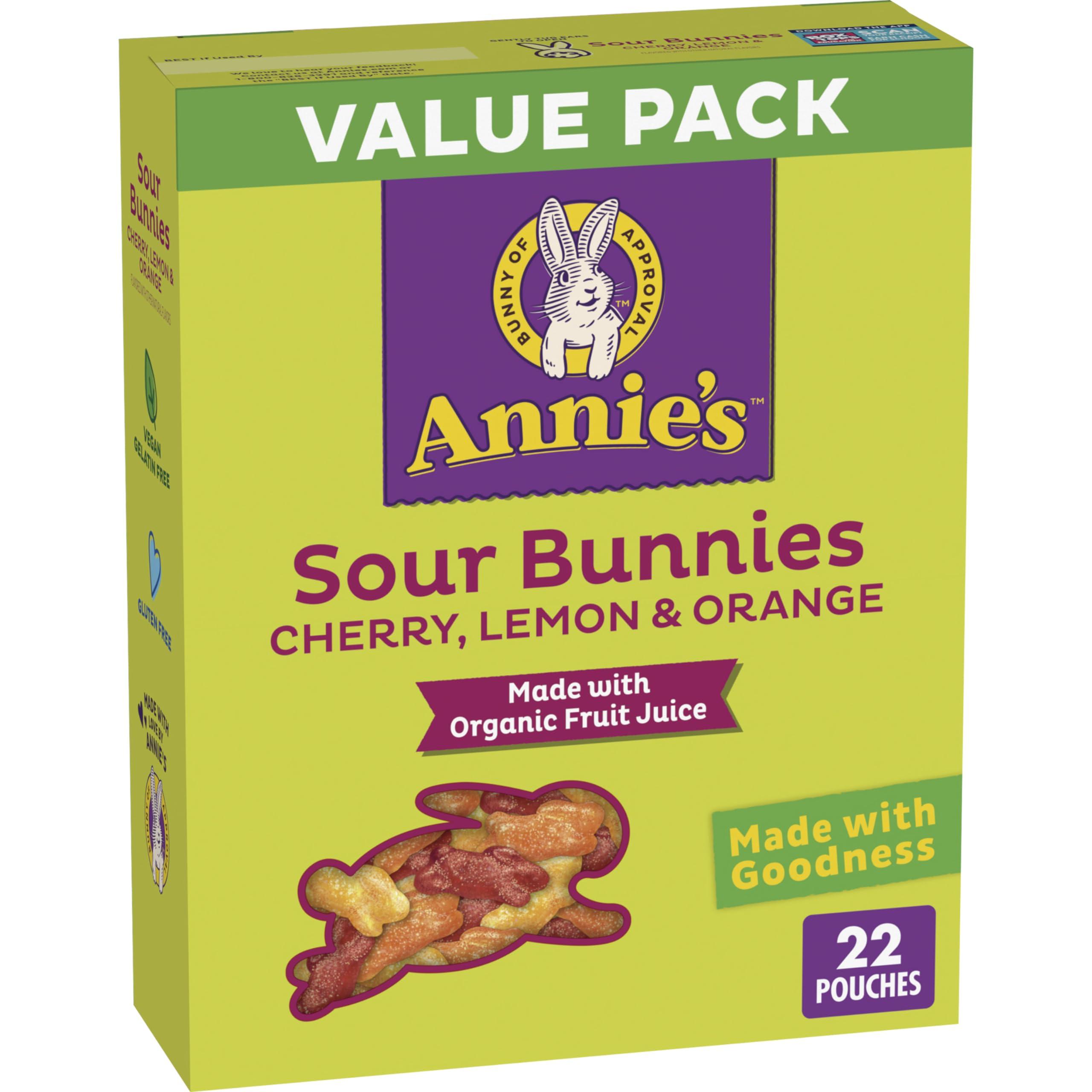 - CONTAINS: One 15.4 oz value pack of Annie's Sour Bunnies Fruit Flavored Snacks; 22 pouches