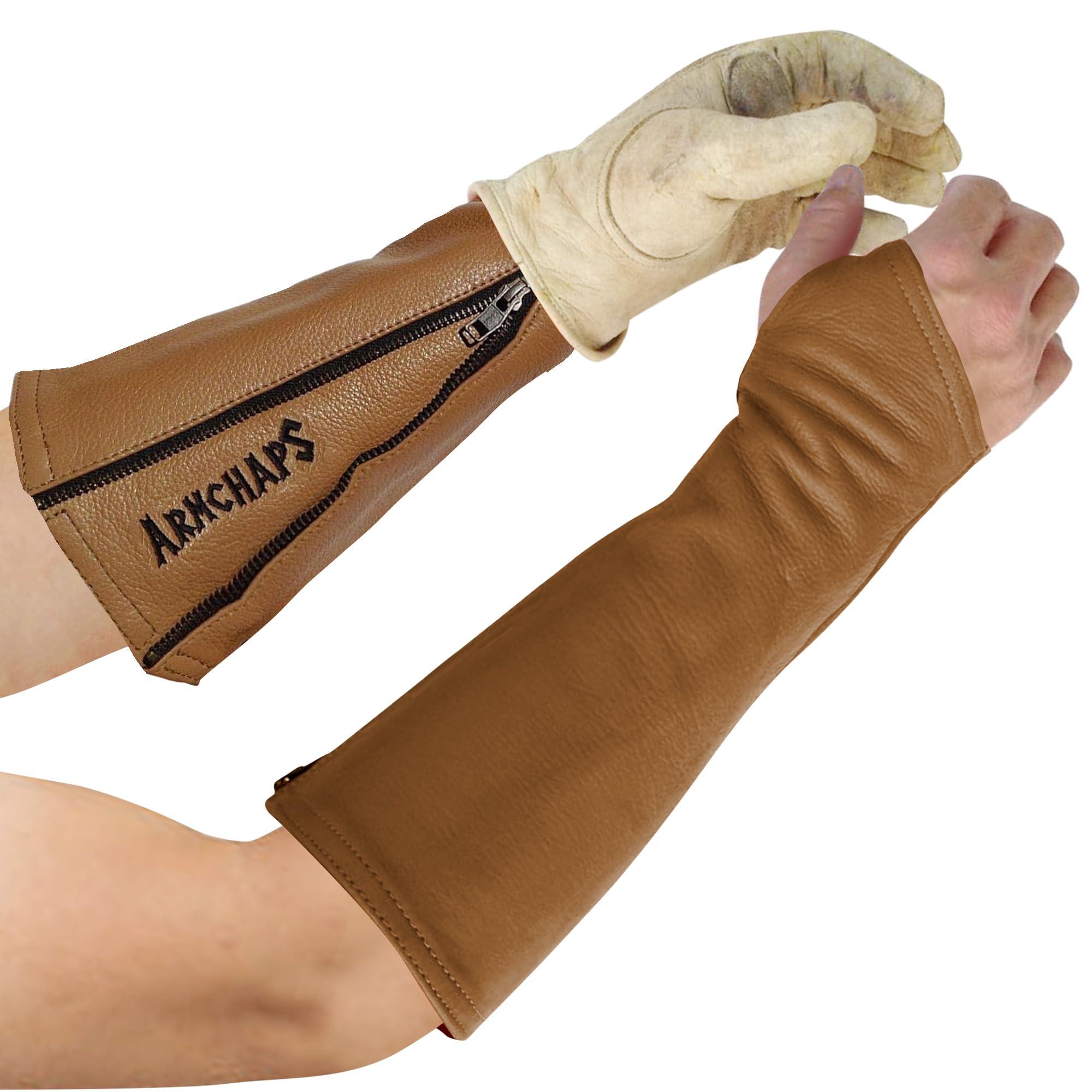 Arm Chaps Arm Chaps Leather Protective Sleeves Arm Guard - Prevent Cuts, Scratches & Bruises - Genuine Cowhide - Ideal for Gardening & Construction - Left & Right Form-Fitting. Brown (1 Pair/X-Large).