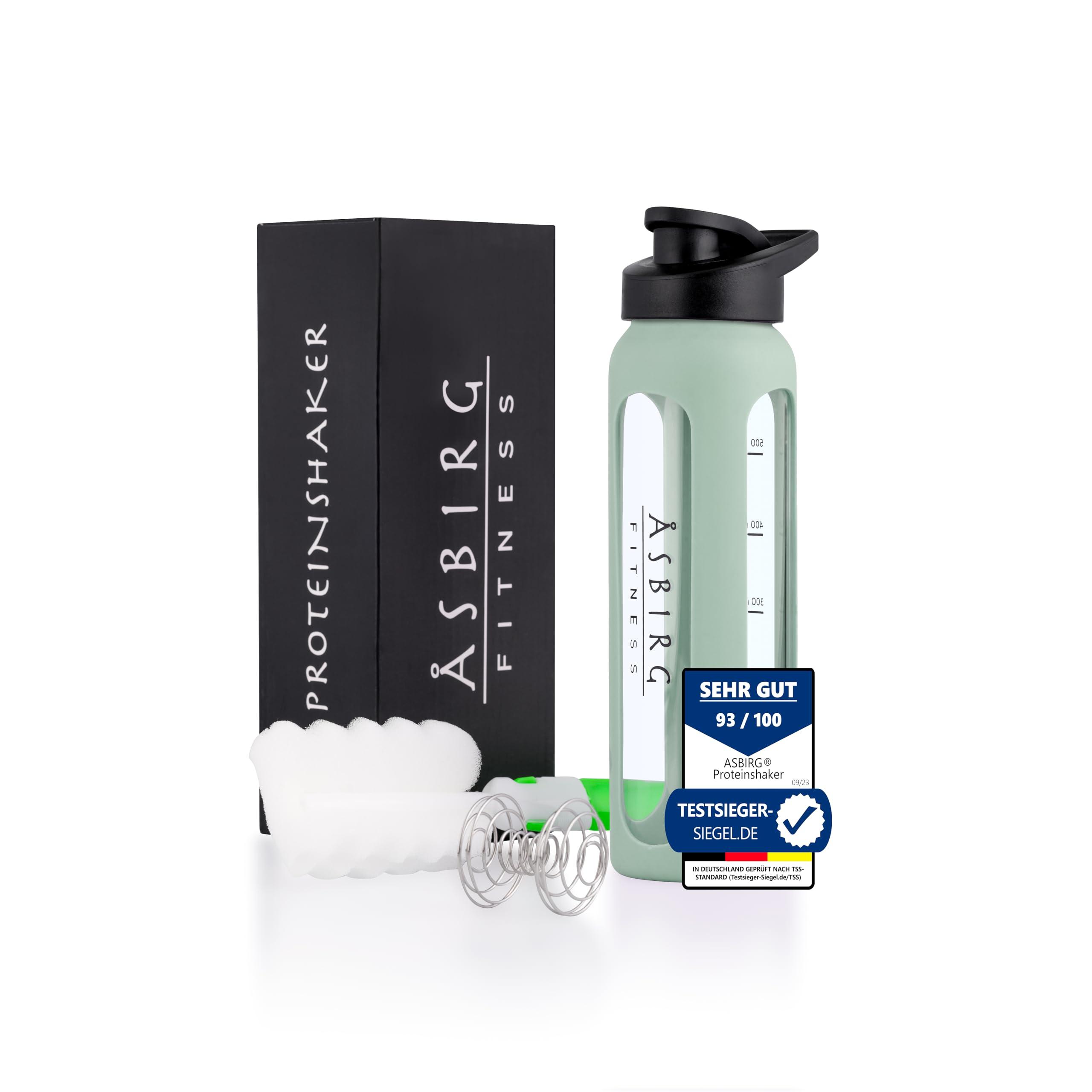 Asbirg Asbirg Fitness | Protein Shaker Made of Glass | Protein Shaker | Drinking Bottle | with Spiral Ball | Black (pastel green)