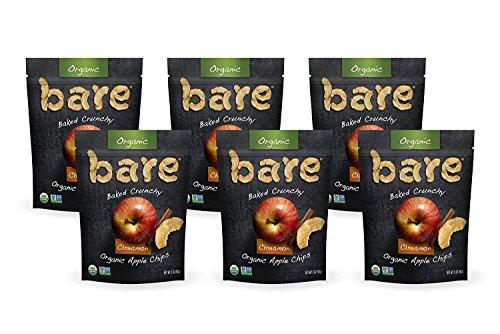 Contains 6 - 3.3oz Bags These organic Bare Cinnamon Apple Chips are packed with a simply delicious apple pie flavored crunch. Low calorie, high fiber, fat-free, no sugar added, low sodium, cholesterol-free No additives, no preservatives, GMO-free Made with 100 percent fruit and a good source of dietary fiber