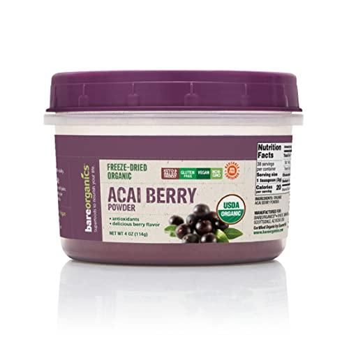 - Acai Powder: BareOrganics Aai powder is gently sweetened and supports healthy immunity, digestive health and skin health with Iron, Vitamin C, calcium and fiber. All of our vegan supplements are USDA Certified Organic, Chemical-Free & Non GMO.