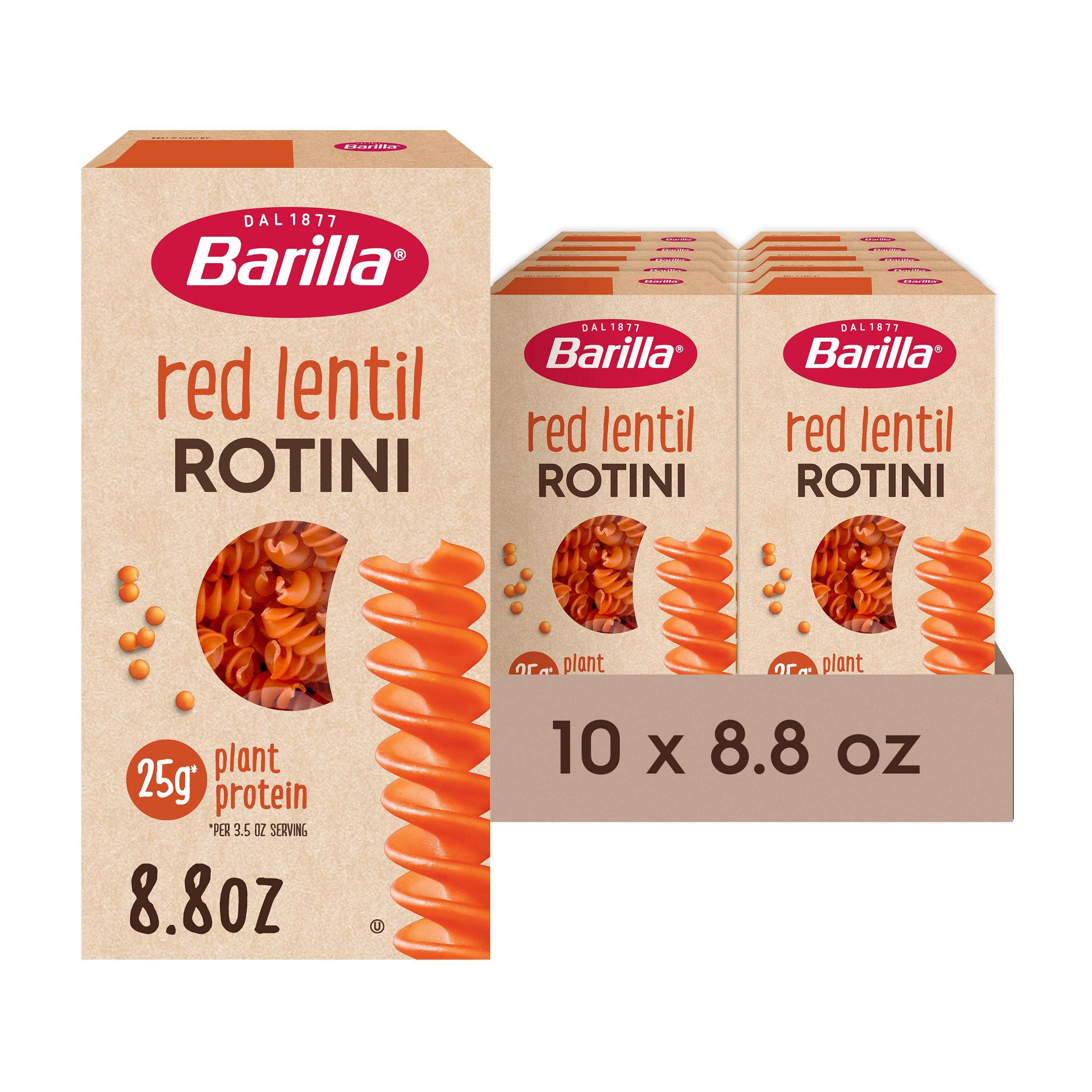 - Barilla Red Lentil Rotini Pasta, Good Source of Plant-Based Protein, Excellent Source of Fiber, Kosher, Gluten Free & Non-GMO, 8.8 Ounce (Pack of 10)