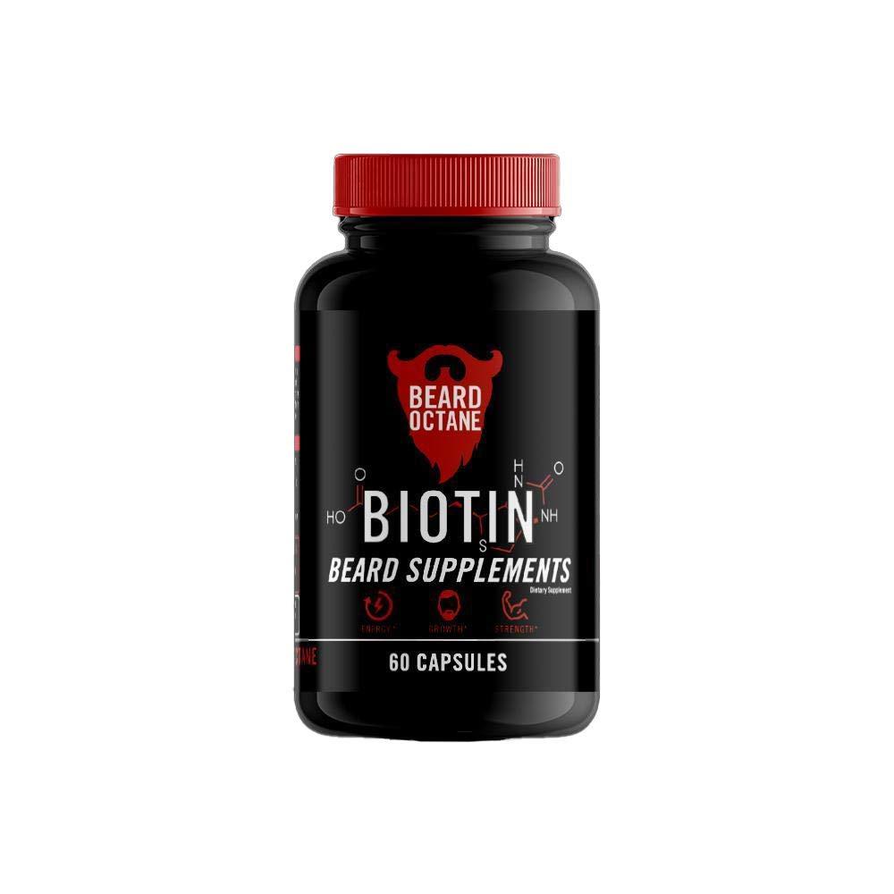 BIOTIN, part of Beard Octane's NEW Beard Supplement Lineup! What is Biotin? A thorough, and "educated" answer that can be referred to on Wikipedia is, "Biotin is a water-soluble B vitamin, also called vitamin B and formerly known as vitamin H or coenzyme R. It is involved in a wide range of metabolic processes, both in humans and in other organisms, primarily related to the utilization of fats, carbohydrates, and amino acids." What does this mean for your beard? Well, Biotin helps strengthen and increase the thickness of your Beard Hair. Biotin can also increase the rate at which your beard hair grows, while also increasing the healthiness. If you're looking to jump start or stimulate beard growth, then Beard Octane's BIOTIN is for you!