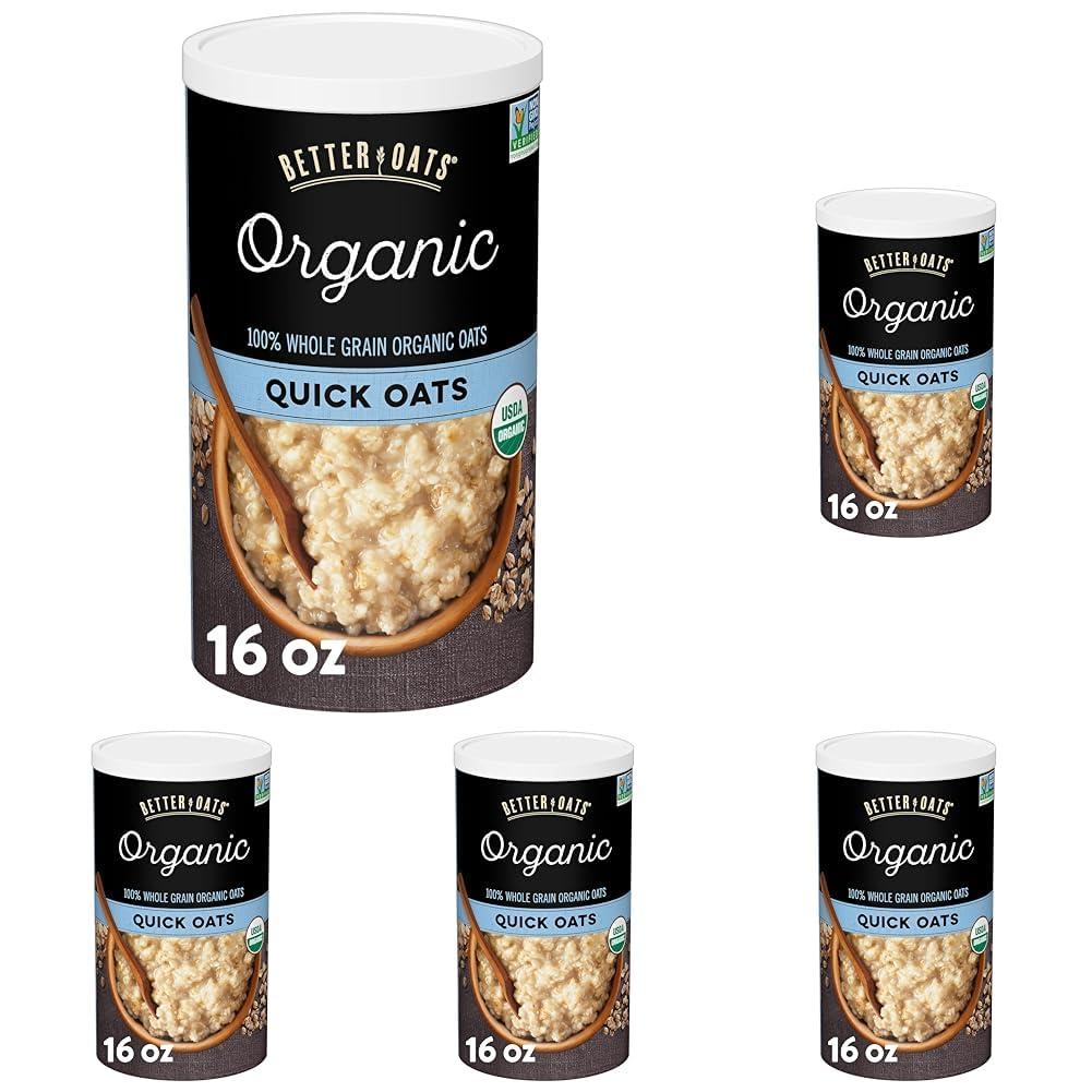 - One 16 oz resealable tub of Better Oats Organic Quick Oats, Organic Oats for Quick Oatmeal