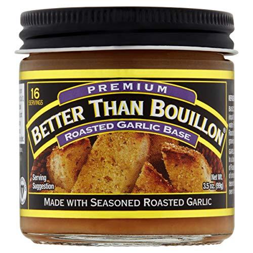 Better than Bouillon Concentrated Stocks are fat free and have 1/3 less salt than ordinary bouillons. Better Than Bouillon Roasted Garlic Base is made with roasted garlic and it gives your favorite recipe a deliciously savory flavor.
