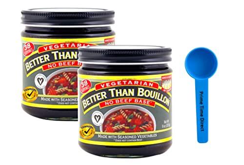 - Includes 2 units of Better Than Bouillon Vegetarian No Beef Base Bouillon, 8 oz, and 1 PrimeTime Direct Teaspoon Scoop