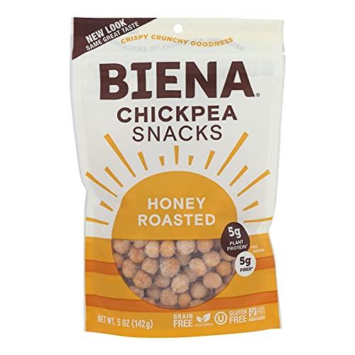 Biena Honey Roasted Chickpea Snacks, 5 Ounce -- 8 per case. Perfectly sweet and salty, with a touch of real honey and sea salt. Hits the spot every time