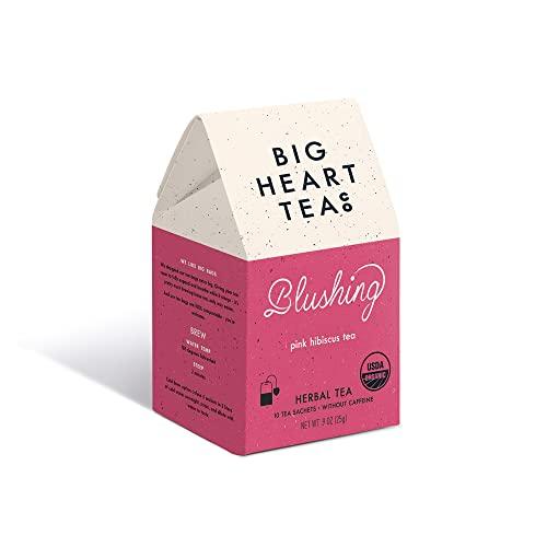Big Heart Tea Co. Tea Bags - Blushing Pink Hibiscus - Certified Organic, Naturally Sweet Ayurvedic Herbal Decaf Tea with Small Batch Ground Herbs - Adaptogenic Tulsi and Lemongrass, 10 Tea Bags
