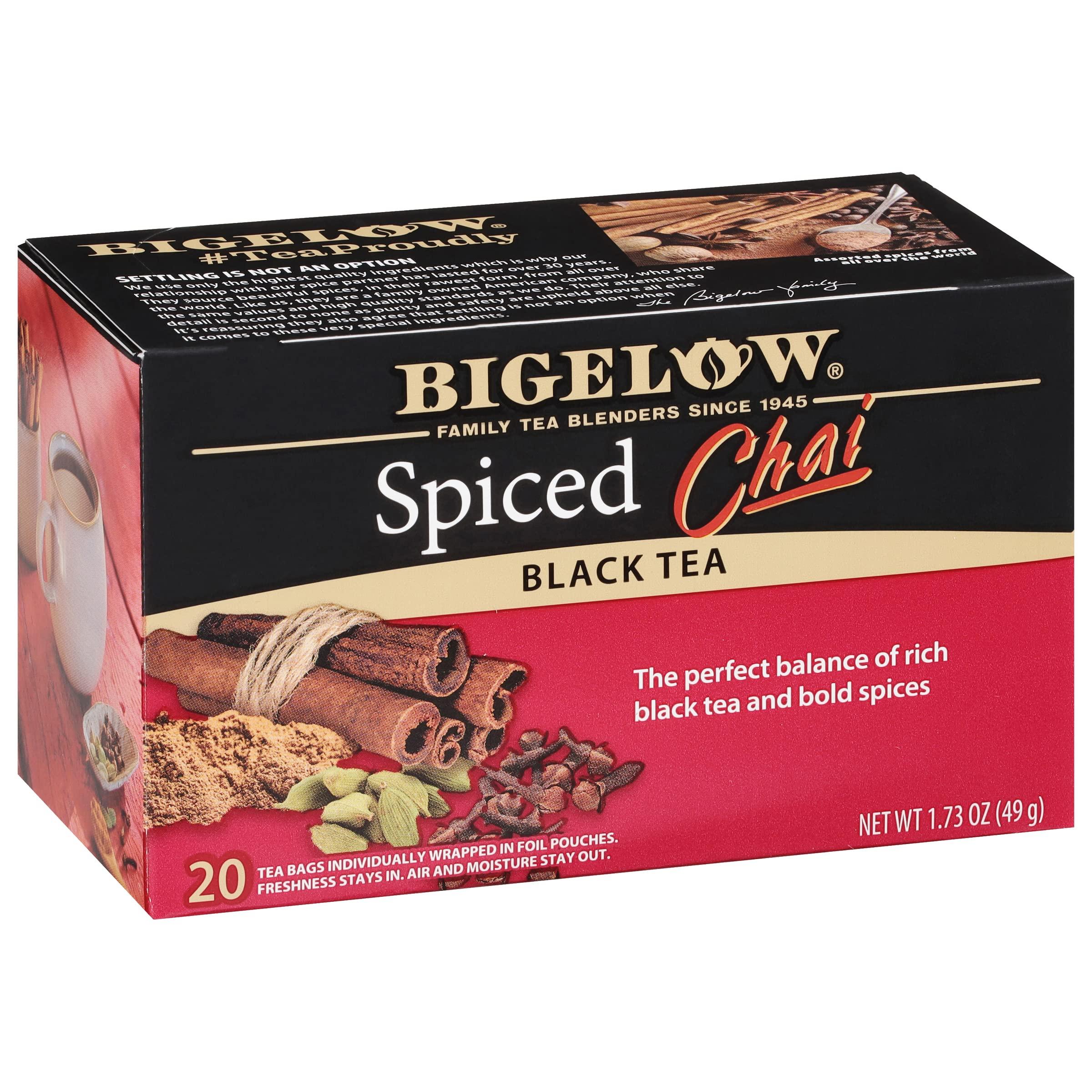 - Robust Spiced Chai: 120 chai tea bags of Bigelow Spiced Chai Black Tea, a black tea accented with aromatic bold spices