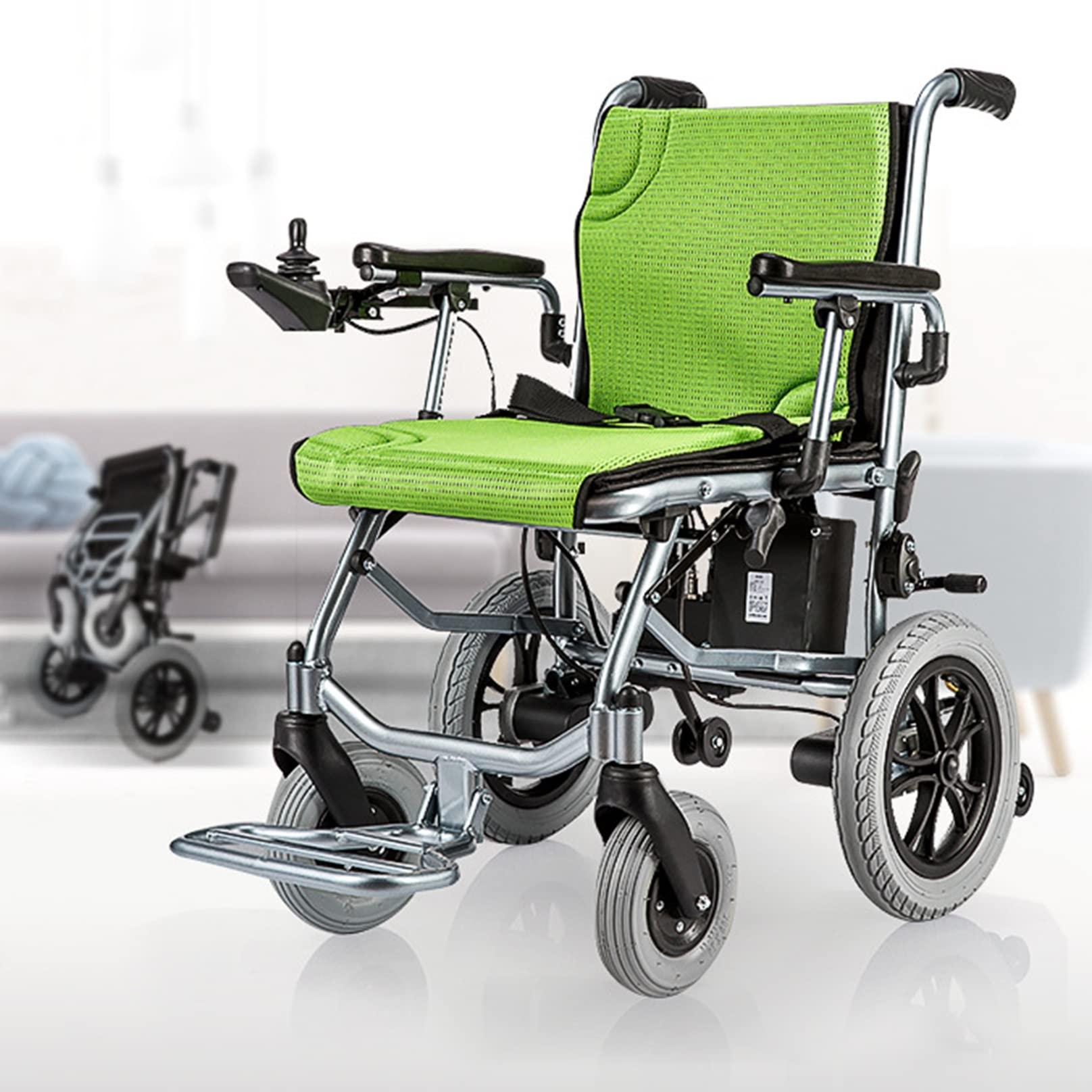 - LIGHTWEIGHT & for AVIATION TRAVEL This electric wheelchair is used Rugged carbon steel frame, weighs only 17kg / 37.5 pounds + battery weight is only 1.5kg / 3.3 pounds, can bear 100kg / 220lb, Easy for the Aviation Travel, storage and transport.Apply to all different road types such as grass, ramp, deceleration strip, brick, muddy, snow, bumpy road.