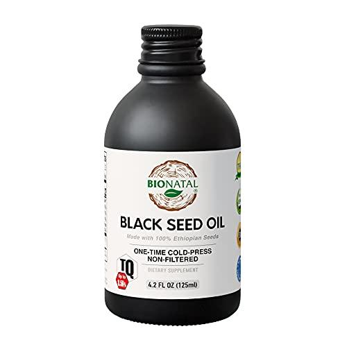 Bionatal's Ethiopian Black Seed Oil 4.2oz (GLASS), Up to 4.34% Thymoquinone (TQ), Nigella Sativa Seeds, Non-filtered black cumin seed oil, Cold-pressed