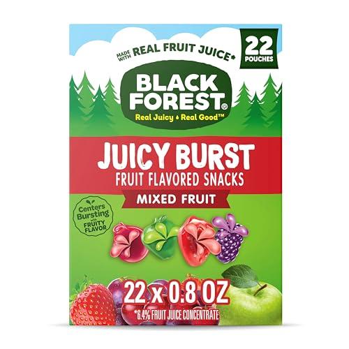 - FRUIT SNACK FUN WITH A TWIST: Black Forest Juicy Burst Fruit Flavored Snacks feature a twist on the classic with busting centers. Try the Mixed Fruit snacks or the Berry Medley for snack time fun