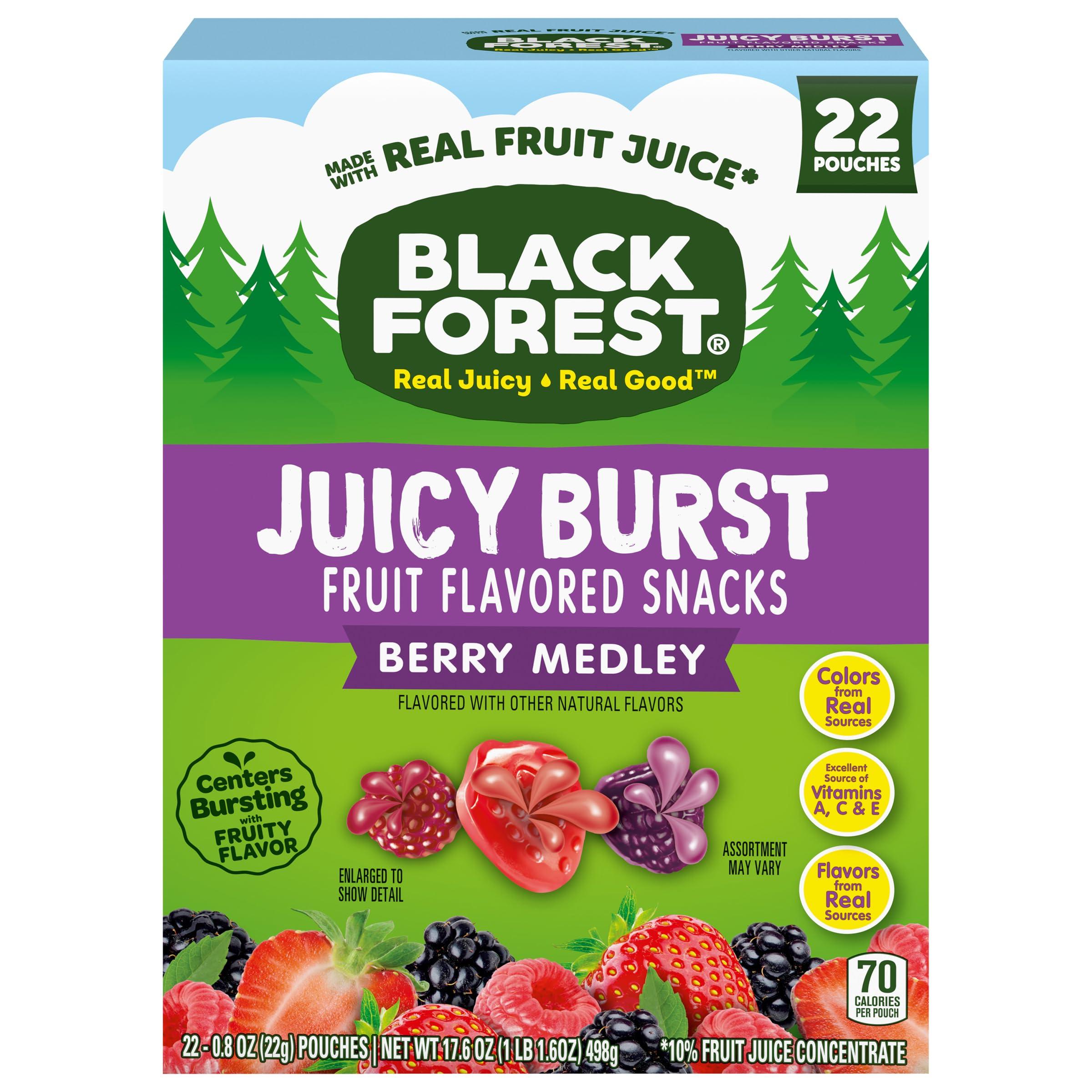 - BURSTING CENTERS: Bite into a snack that bursts with flavor and juicy delight! Black Forest fruit flavored snacks are made with real fruit juice* and have a soft, chewy texture.