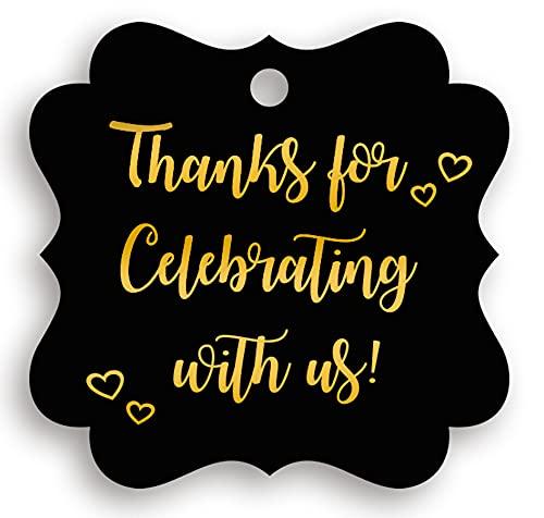 - Thank you for celebrating with us tags, real gold foil with vibrant colors, embossed delicate printing. It is not offset print.