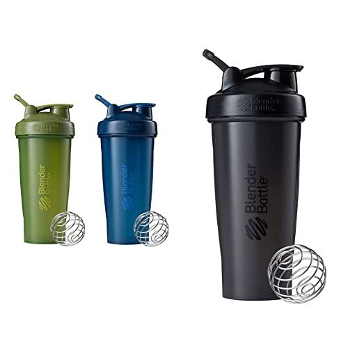 BlenderBottle Classic Shaker Bottle Perfect for Protein Shakes and Pre Workout, 28-Ounce (2 Pack), Moss/Moss and Navy/Navy
