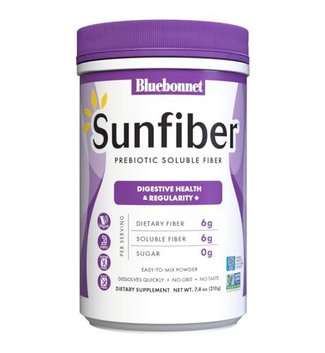 - PLANT-BASED SOLUBLE FIBER - Bluebonnets Sunfiber Powder delivers 6 grams of soluble and slow-fermenting plant-sourced fiber that is highly absorbable and bioavailable! This unflavored, colorless, and odorless plant based prebiotic soluble fiber dissolves instantly with water or any liquid, making it a breeze to support your digestion with your favorite beverage! *