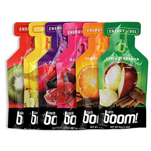 Boom Nutrition - Carb Boom Energy Gel - Fruit-Flavored Energy Gels - Workout Gel - Energy Gel for Cycling - Running Gel - Natural Energy Gel - Variety 6 Flavors (4 Each) - 24 Pack