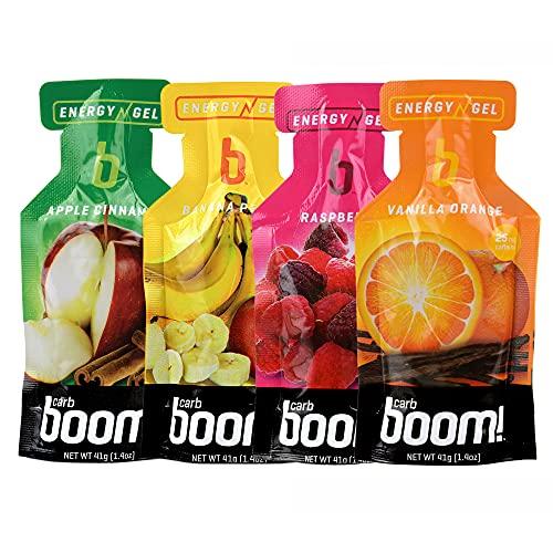 Boom Nutrition Carb Boom Energy Gels - Apple Cinnamon, Banana Peach, Raspberry, & Vanilla Orange Flavors (6 Each) - Natural Energy Gel for Cycling & Running - (Variety 24 Pack)