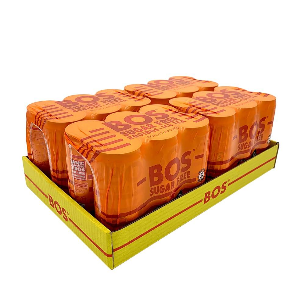 BOS Rooibos Iced Tea Sugar Free Peach | 24x (6x 10.1 oz Cans) | Organic, Caffeine Free, Naturally Sweet, Antioxidant-Rich, Herbal, Red Rooibos Tea | From South Africa