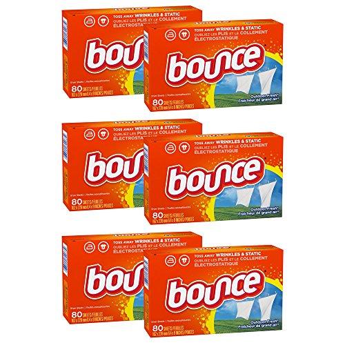 - 6 boxes of 80-count Bounce fabric softener dryer sheets