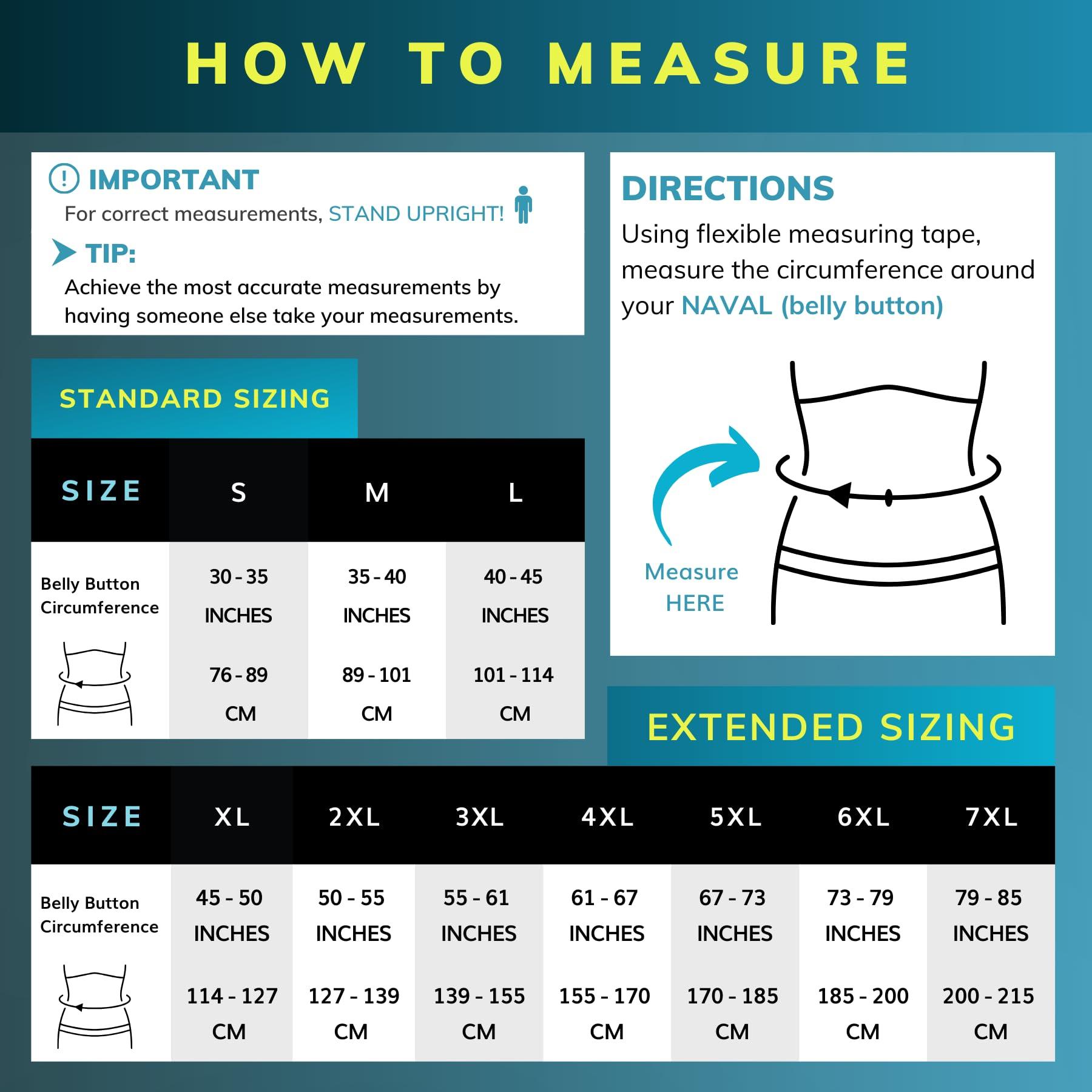 - Before purchasing the lower back brace, use a soft, flexible measuring tape and find the circumference around your belly button, in inches; back brace belt is available in a wide range of sizes for average to plus size men and women above or under clothes